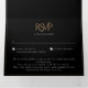 Invitación Tríptica SIN COMIDAS Monograma Oro Negro Todo En Un Boda