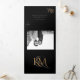 Monograma Moderno De Oro Negro Todo En Una Invitación Triple-Doble Boda. Diseño elegante y moderno de doble monograma de la invitación a la boda. Hermoso y sencillo de acomodar todos los temas. Un toque de clase y lujo en el oro falso mientras los textos son limpios y luminosos. Un diseño todo en uno con RSVP (sin comidas), Recepción y otros detalles incluidos en una tarjeta.