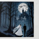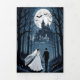 This enclosure details card completes your wedding stationery suite with a design inspired by the magic, mystery, and charm of Halloween. The scene shows the couple walking toward a haunted castle, surrounded by a dark and enchanting forest, capturing a gothic, romantic, and sophisticated style that combines elegance and emotion in every detail. The carefully balanced composition blends shadows, light, and subtle floral elements, creating a unique atmosphere that highlights the beauty and fantasy of your themed wedding.