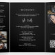 Part of a complete wedding stationery collection, this card is available in multiple formats and paper types, offering a professional finish that enhances the intensity of colors and the mysterious atmosphere of the design. The tri-fold format organizes the information clearly and elegantly, integrating up to six photos that capture the couple’s most special moments, providing a complete and visually appealing presentation.