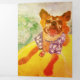 Cuta acuarela del perro de Chihuahua en la tabla de surf con tema de pelota de tenis