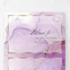 Sorprendente salpicadura de tinta de alcohol en tonos de malva violeta ultra violeta de amatista púrpura y rosa profundo - creando esta moderna tinta de líquido ultravioleta morado ultravioleta. Cada sección resaltada con un sobre blanco enmarcado en oro dorado, en el centro de frente está tu foto acentuada con un doble marco dorado y detrás del sobre blanco para un atractivo esotérico un diseño abstracto moderno y bonito para una invitación nupcial completa con rsvp de elección de comida desmontable predireccionada para que tus invitados puedan enviar fácilmente su correo - una impresionante invitación a una boda -