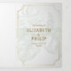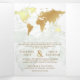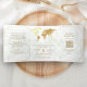 Invitación Tríptica White Gold Tropical Destination World Map Wedding