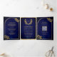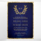 Invitación Tríptica Wreath de Laurel de oro deja Boda azul real