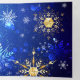 Invitación Tríptica XMAS Blue Background with Golden Snowflakes