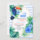 Una invitación a la ducha de temática tropical para bebés con flores y follaje toscanos y tropicales sobre un fondo de rayas azules y blancas.<a href="https://www.freepik.com/free-photos-vectors/background">Vector de fondo creado por BiZkettE1 - www.freepik.com</a>). <br/>() La tarjeta es fácil de personalizar con su texto, tipo de letra, color de letra, opciones de forma de papel y elección de seis tipos de papel.<br/>() ¿No es exactamente lo que buscas? Todos nuestros productos pueden ser personalizados diseñados para satisfacer sus necesidades sin cargo adicional.<br/>() Simplemente contáctenos en askcottonlamb@gmail.com.<br/>() Coordinar los productos disponibles: ¡Simplemente pregúntennos!"