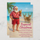 Celebrate the holidays island-style with this Tropical Christmas Beach Party Invitation! Featuring a realistic Santa in a festive Hawaiian shirt holding a piña colada, standing on a sunny beach with two reindeer by the shoreline, this invite brings warm-weather holiday vibes to any celebration. The set includes a matching back design with a soft, faint writing overlay and tropical scenery for a polished, professional look.