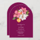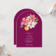 Announce your upcoming nuptials with this eye-catching arch-shaped wedding invitation. The striking design showcases a lively arrangement of pink flowers, delicate white blooms, and bright oranges, symbolizing the sweetness of your love. Set against a rich plum backdrop, this invitation exudes a modern yet whimsical charm. The text is easily readable, allowing for clear presentation of your wedding date, time, and venue. This invitation is a beautiful choice for couples who want to add a splash of color and personality to their wedding stationery.