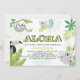 Invitación divertida, festiva y colorida a la ducha de bebé con adorables ilustraciones de tocan, koalas, perezosos, philodendrón de hojas divididas, hojas de plátano y hojas de palma. Esta ducha tropical para bebés es perfecta para duchas de verano, duchas para bebés temáticas oceánicas y duchas para bebés.