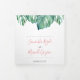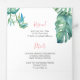 Nuevo foco tropical y enviar invitación en un verde botánico y diseño floral. El flap exterior central muestra la foto de tu pareja. Los detalles se establecen en una tipografía de escritura de moda en coral con un tipo de letra serif tradicional. Diseñado con una carpa de mi mano original pintada a color de agua hojas de palma monstera y tonos de flores de hibisco de hojas rosas, naranjas, turquesas y verdes. Personalice cada solapa con los detalles de su boda y los iconos de mi cóctel, flamingo rosa y tortuga marina. El corazón dibujado a mano se puede mover a su ubicación específica en mi mapa de acuarelas. Simplemente haga clic en el botón personalizar y haga clic y arrastre el corazón. Esta invitación es perfecta para bodas en los Cayos de Florida, Key West o en cualquier lugar de Florida. Para ver más cuádruples acuarelas impresas en el sur de Florida, visite www.zazzle.com/dotellabelle
