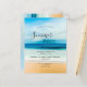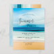 Una invitación a una costa a orillas del mar fiesta de verano, fiesta de playa. Una playa de arena, océano y cielo azul como fondo. Plantillas para los detalles del fiesta, información. Atrás: el mismo fondo que en el frente. Sugerencia: Si no desea que se vea como una postal, haga clic en personalizar, vaya a la parte posterior y quite el separador y el sello postal.