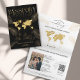 Modern and Elegant World Map Invitation Wedding Destination, like passport with glitter palm trees and heart. Add your QR code