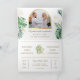 Invitación Tropical Gold Monstera Palm Photo QR Code Wedding