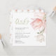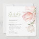 Una elegante ducha para bebés cuenta con un arreglo con tulipanes acuáticos en tonos rosa y blanco. Bebé en Bloom en escritura manuscrita. Personalice los detalles de clave, como el nombre de mamá, la fecha y hora del evento, la ubicación, RSVP e información del registro. El lado inverso se coordina en un diseño de patrón tulipán