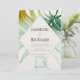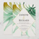 This beautiful tropical beach destination wedding invitation features a simple green-and-gold watercolor background of tropical palm foliage on the front and back. As well as bold, modern typography and delicate gold details within a diamond-shaped frame. This invitation is named Tulum because it's perfect for a beach destination or summer wedding. Please check out the related wedding stationery.