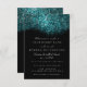 Invitación Turquesa Azul Brillante Glitter Negro Blanco Event