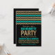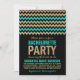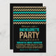 Invitaciones a la fiesta de Bachelorette Chevron Bachelorette con efecto Purpurina Turquesa y Oro.
