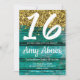 Invitación Turquesa Rustic Gold Purpurina 16 Fiesta de cumple