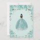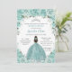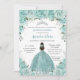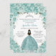 Invitación Turquesa Verde Floral Princesa Plata Quinceañera