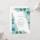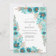 This design features vibrant turquoise watercolor blooms paired with shimmering copper metallic foliage. The artistic roses and lush leaves create a sophisticated and ethereal atmosphere for a romantic event. A clean white background allows the teal and bronze tones to pop, offering a fresh yet luxurious aesthetic.