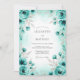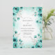 This design showcases a delicate watercolor border of teal roses and anemones, accented by soft gray leaves. The ethereal aqua wash creates a tranquil and romantic mood for a sophisticated seasonal event. It captures the essence of a blooming botanical display with a cool-toned and refreshing color palette.