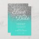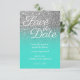 Invitación Turquoise Ombre Silver Purpurina Save the Date