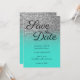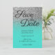 Invitación Turquoise Ombre Silver Purpurina Save the Date