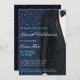 Una invitación a todo propósito con un esmoquin negro y una rosa roja.