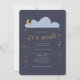Esta tierna invitación a la ducha para bebés tiene un cielo nocturno con patrones sutiles en la nube y luna creciente y estrellas dispersas que enmarcan el diseño.
