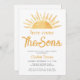 Invite family and friends to your sun-themed twin boy's baby shower with this fun invitation.