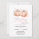 This elegant and charming baby shower invitation features a beautiful watercolor illustration of 2 sweet pumpkins with a delicate pink ribbon, perfect for celebrating the upcoming arrival of a little your twins in the fall season.