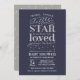 Esta tierna invitación a una ducha de bebé tiene un polvo de estrellas y la frase "twinkle twinkle little star, ¿sabes lo amado que eres?" en plata y marina - ¡hace una gran invitación a una ducha neutral de género!