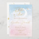 Twinkle Twinkle Pequeña estrella Género revelar invitación con diseño de luna y estrella en un suave fondo azul y rosa cielo. Personalizar de texto para su fiesta.