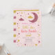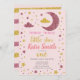 Esta linda y elegante pequeña estrella de twinkle twinkle" de primer cumpleaños incluye fondo de bebé rosa con estrellas purpurinas, luna y nubes de oro y rosa falsos. El diseño del reverso es una alternancia de rayas purpurinas de color falso dorado y rosa.