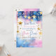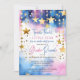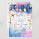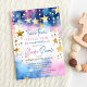 Twinkle twinkle pequeño estrella género revelar plantilla editable invitación descarga digital instantánea, niebla galaxia rosa y azul con estrellas de oro en cuerdas tipo de letra casual niño o género chica revelar invitación