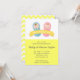 Celebra la llegada de tus gemelos con este lindo bebé y chica con una invitación a la ducha pacificadora. El texto en blanco dice "¡Estamos teniendo gemelos!". Personalice fácilmente los detalles de su fiesta en texto gris disponible. Elegante fondo de chevron amarillo y blanco en la página de atrás.