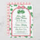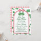 Are you about to welcome two little lucky charms into your life? This pink and green girl twins baby shower invitation has a pair of four-leaf clovers tied with a pink bow. The St Patrick's Day baby shower invitation wording is framed by a pink arch. The background features a matching clover pattern, all in a charming hand-drawn style.