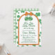 Are you blessed with two little lucky charms and want to throw a four-leaf clover themed baby shower? This gender neutral twin baby shower invitation has a pair of four-leaf clovers tied with an orange bow. The St Patrick's Day baby shower invitation wording is framed by an orange arch. The background features a matching clover pattern, all in a charming hand-drawn style.