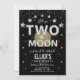 Celebrate your little one turning two with this charming “Two the Moon” second birthday invitation. Featuring a dreamy outer space theme with stars and a glowing moon, this invitation is perfect for a whimsical and fun birthday celebration.