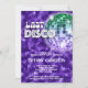 Última invitación a la discoteca Bachelorette en violeta con espejo de disco y fondo de temblor morado. Para las próximas fiestas de soltera con temática disco.