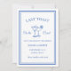 'Last Toast on the Coast Invitation' es una adorable adición a cualquier celebración de soltera con temática costera. Esta invitación proviene de nuestra suite costera Blue Bachelorette, que ofrece un ambiente elegante en la playa con su brillante paleta de colores azules.