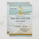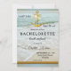 Última navegación antes del velo: Una elegante invitación de plantilla de itinerario de escapadas de fin de semana de soltera o gallina con un tema náutico con ancla (opcional) e imágenes de playa. Al fondo hay una plantilla de código QR para enlazar fácilmente a su propio sitio web.