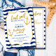 Celebra a la futura novia con estilo con nuestra colección de fin de semana de despedida de soltera "Última travesía antes del velo": el tema náutico perfecto para escapadas costeras, fiestas en la playa, días en barco o cruceros tropicales. Este diseño presenta elementos marítimos elegantes como anclas, olas, veleros y azules oceánicos combinados con tipografía elegante para un fin de semana divertido, femenino e inolvidable con tu grupo de amigas.