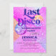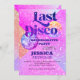 Invitación de la fiesta de soltero Disco Ball de los años 70 con bolas brillantes rosas y moradas sobre un fondo purpurinoso. +++++++ Adecuado para la celebración de una novia moderna con temática retro.