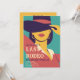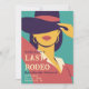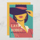 Una elegante y colorida invitación del fin de semana de la bachillerato de rodeo con una temática retro vintage, con un ilustracion de estilo poster de una hermosa mujer en una pose fresca, usando un estilizado sombrero de cowgirlhat, con un retro color rojo, amarillo y azul oscuro. Una invitación divertida de fin de semana de soltera para una novia a la que le encanta el retro y la cosecha, diseños de los 70, moda de campo, vaquera romántica, diseños de arte, ilustracion.
