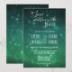 Las invitaciones a bodas celestes presentan tipografía de escritura que dice, A Love Written in the Stars, con cielo azul verde nocturno con estrellas brillantes Wedding Invitation.