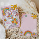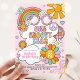 Invitación al cumpleaños de un Groovy Year 70s Flower Power Rainbow Todos los diseños son © PIXEL PERFECTION FIESTA LTD