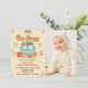 Invitación a la primera fiesta de cumpleaños del arcoiris retro de un Groovy
