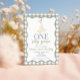 ¡Un tonto ganso! primer cumpleaños con ganso, polvoriento marco ondulado azul y texto verde sabio.