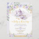 Invitación Un bebé elabora té de Baby Shower con flores morad